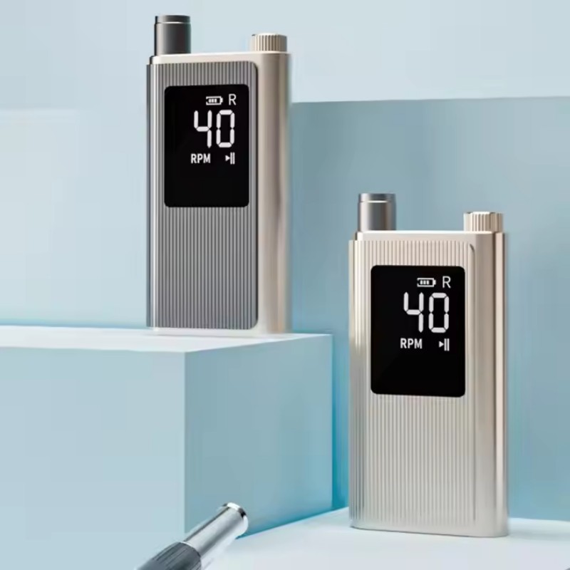 Конструкция дисплея этой высокоскоростной профессиональной дрели для ногтей со скоростью 40 000 об/мин оснащена переключателем включения/выключения и вращением вперед/назад для активации одной кнопкой, гнездом для быстрой зарядки внизу, сменным гнездом для сверла вверху и трехпозиционной регулировкой скорости для удовлетворения различных потребностей.
