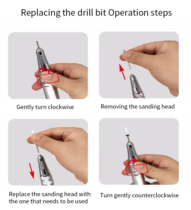 Этот высокоскоростной профессиональный метод замены сверла для замены сверл для ногтей со скоростью 40 000 об / мин, то есть вставьте и вытащите, простой и удобный, замену можно использовать после завершения.
