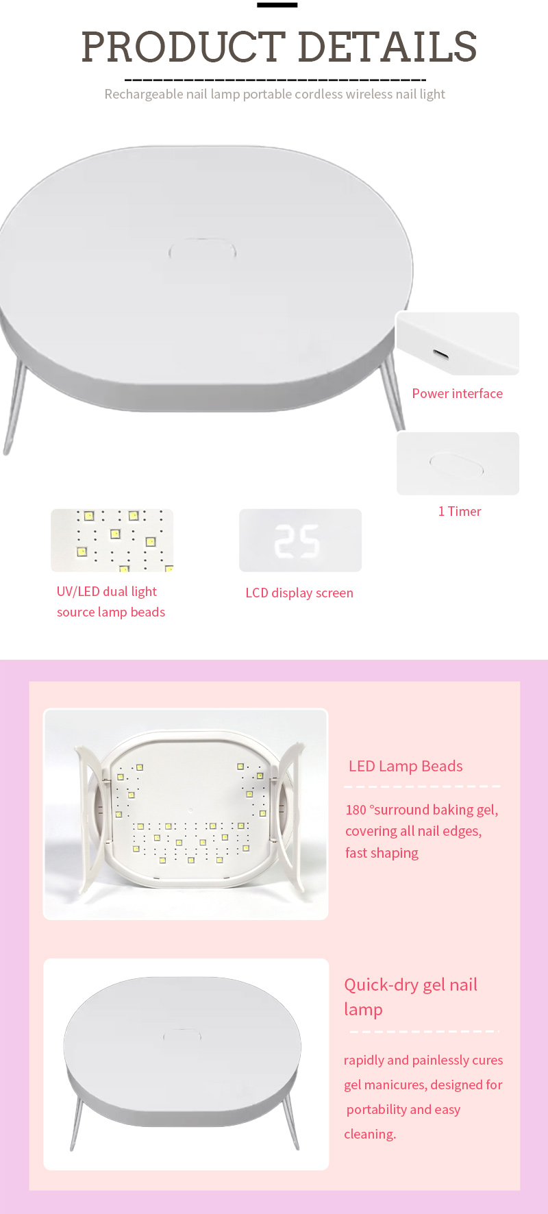 • Мощные светодиодные лампы для быстрого 10-секундного отверждения геля.