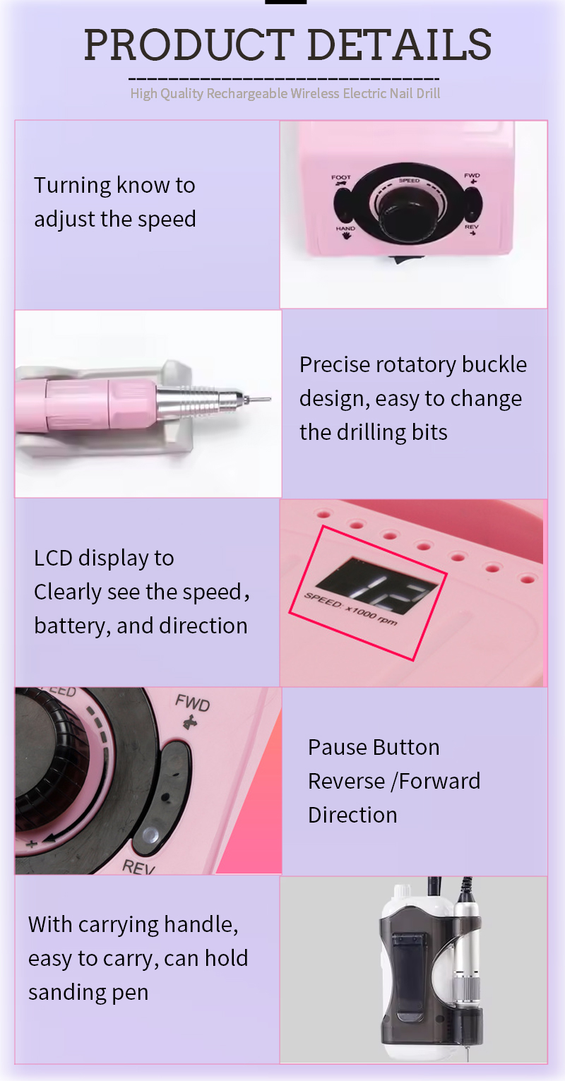 Новый стиль изогнутые сцепления с головой.Шэньчжэнь Руина Оптоэлектронная Компания, ООО. ведущий китайский производитель, поставщик и экспортер аккумуляторных электрических пилочек для ногтей. Придерживаясь стремления к идеальному качеству продукции, многие клиенты остались довольны нашей беспроводной электрической пилкой для ногтей. Экстремальный дизайн, качественное сырье, высокая производительность и конкурентоспособная цена — это то, чего хочет каждый клиент, и это также то, что мы можем вам предложить. Конечно, немаловажным является и наше безупречное послепродажное обслуживание.