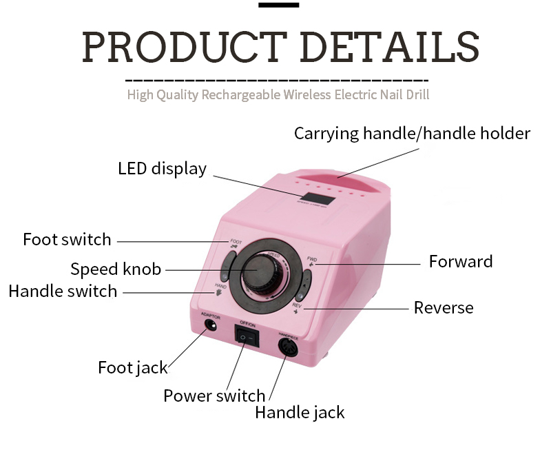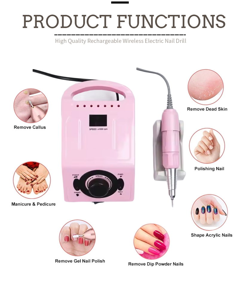 Электрическая дрель для ногтей, наконечник 65 Вт, нелегко повредить, 35000 об/мин
