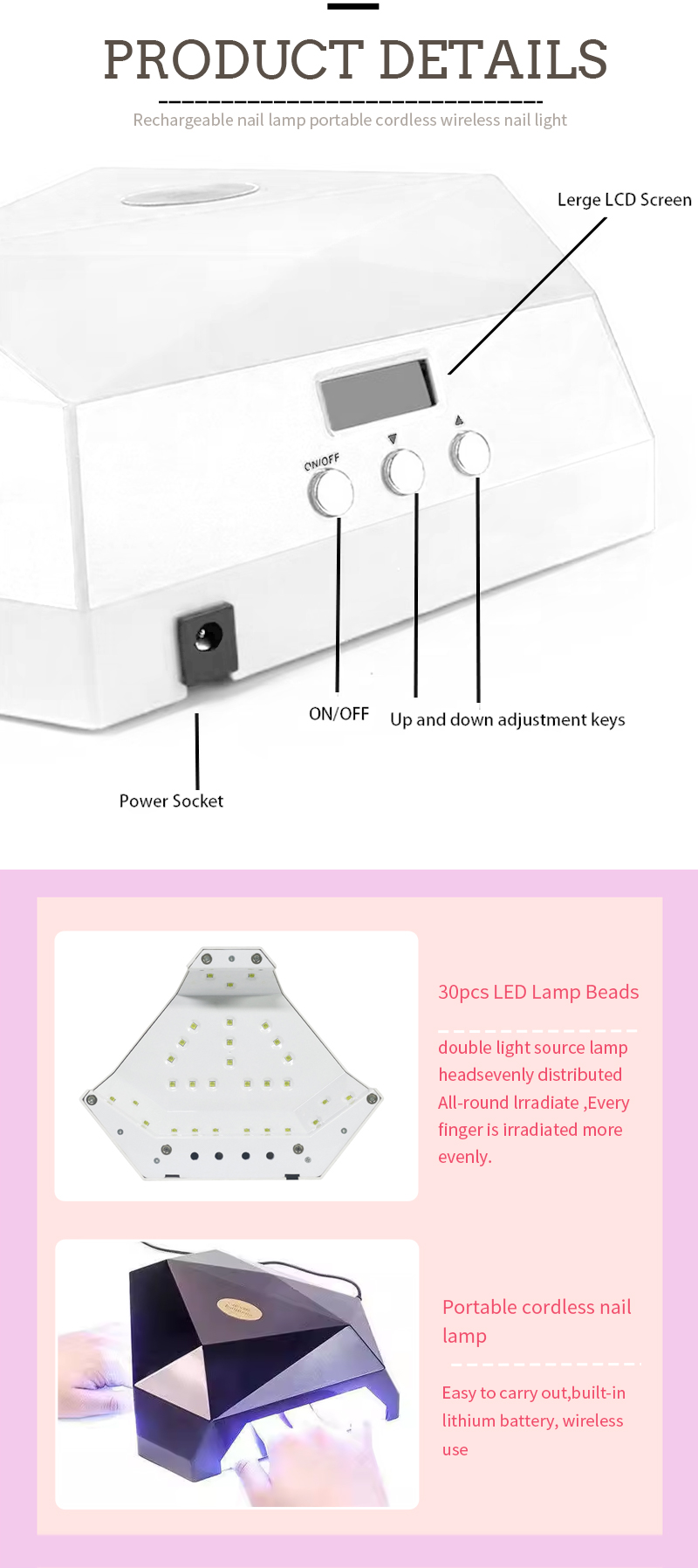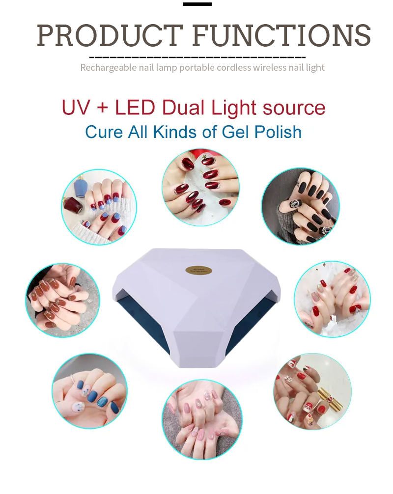 Продукт обеспечивает равномерное высыхание клея без усадки. Двойные источники света обеспечивают мягкий нагрев, предотвращающий изменение цвета рук и напряжение глаз, подходят как для рук, так и для ног, обеспечивая удивительно быстрое высыхание.