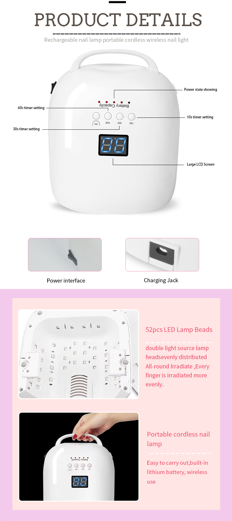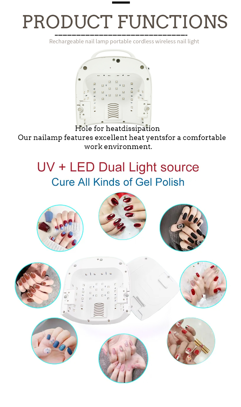 Продукт обеспечивает равномерное высыхание клея без усадки. Двойные источники света обеспечивают мягкий нагрев, предотвращающий изменение цвета рук и напряжение глаз, подходят как для рук, так и для ног, обеспечивая удивительно быстрое высыхание.
