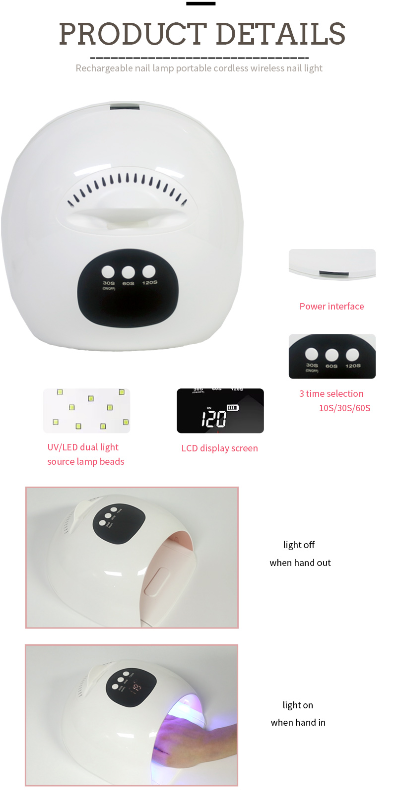 Продукт обеспечивает равномерное высыхание клея без усадки. Двойные источники света обеспечивают мягкий нагрев, предотвращающий изменение цвета рук и напряжение глаз, подходят как для рук, так и для ног, обеспечивая удивительно быстрое высыхание.