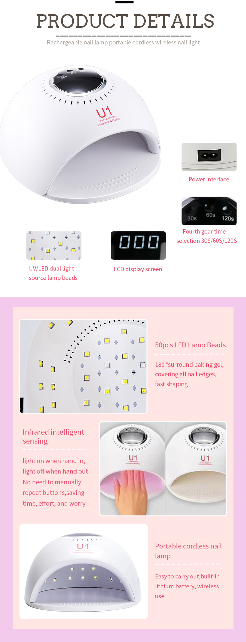 Продукт обеспечивает равномерное высыхание клея без усадки. Двойные источники света обеспечивают мягкий нагрев, предотвращающий изменение цвета рук и напряжение глаз, подходят как для рук, так и для ног, обеспечивая удивительно быстрое высыхание.