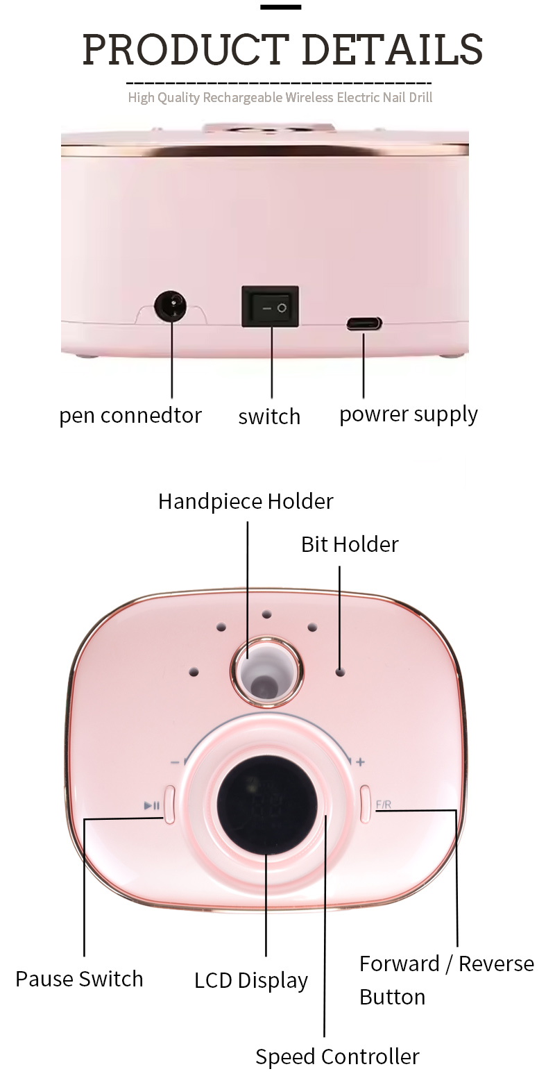 Набор аккумуляторных профессиональных сверл для ногтей 45 Вт, 40 000 об/мин