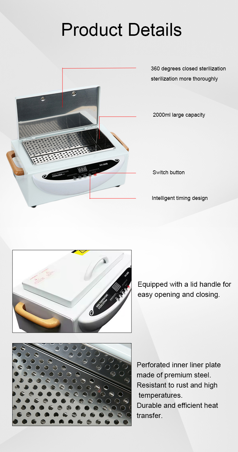 Этот стерилизатор в первую очередь генерирует тепло через нагревательное кольцо, используя высокие температуры для дезинфекции.