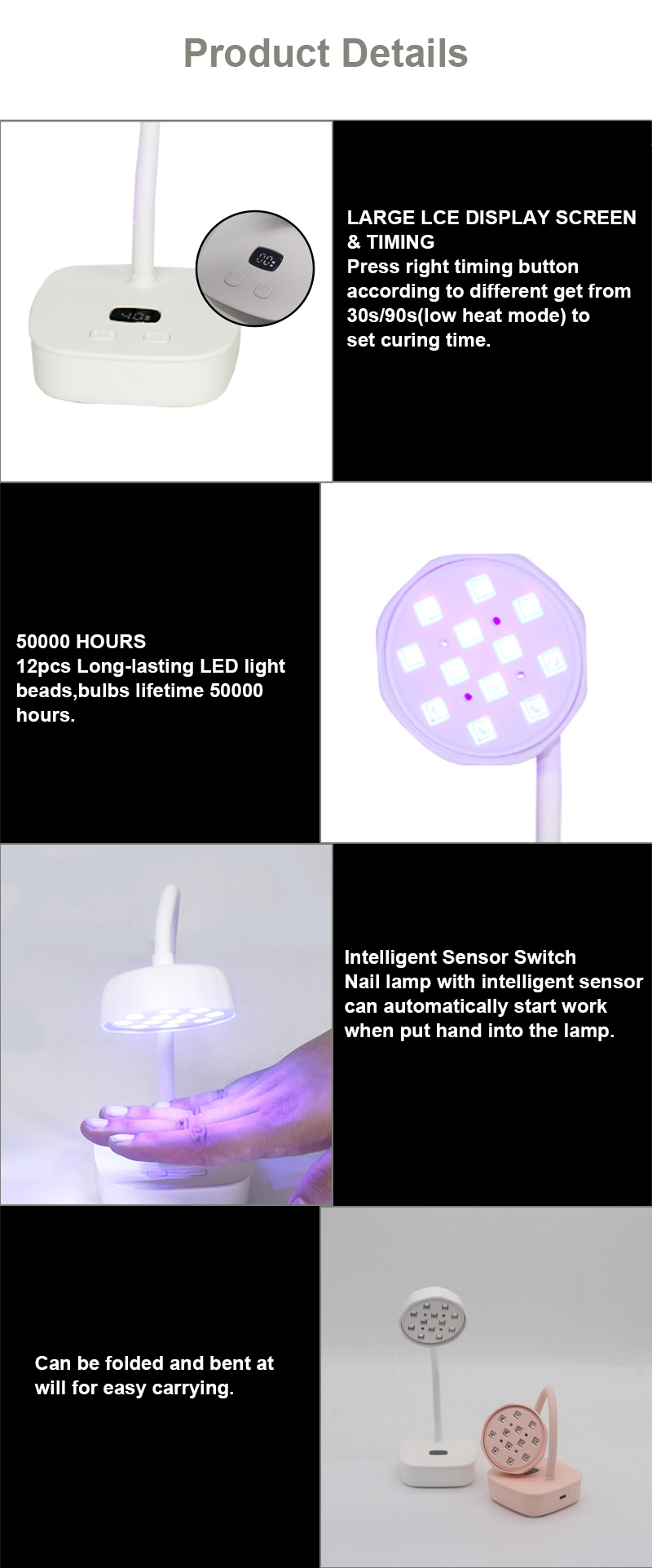 Продукт обеспечивает равномерное высыхание клея без усадки. Двойные источники света обеспечивают мягкий нагрев, предотвращающий изменение цвета рук и напряжение глаз, подходят как для рук, так и для ног, обеспечивая удивительно быстрое высыхание.