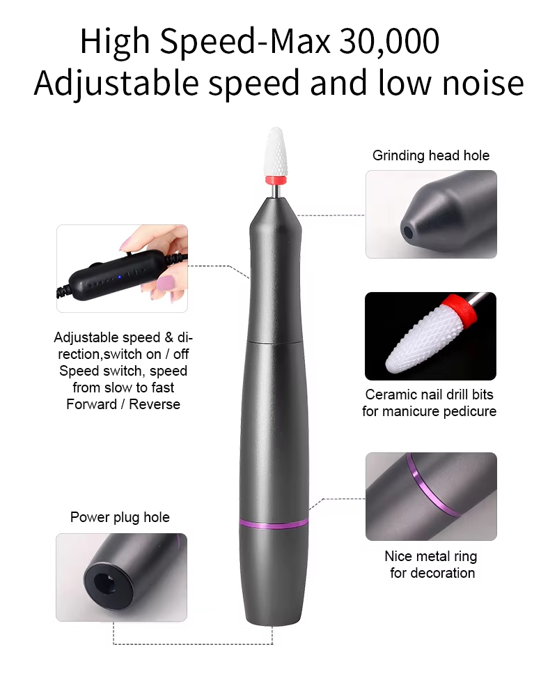 Характеристики продукта и применение малошумной дрели для дизайна ногтей в форме ручки