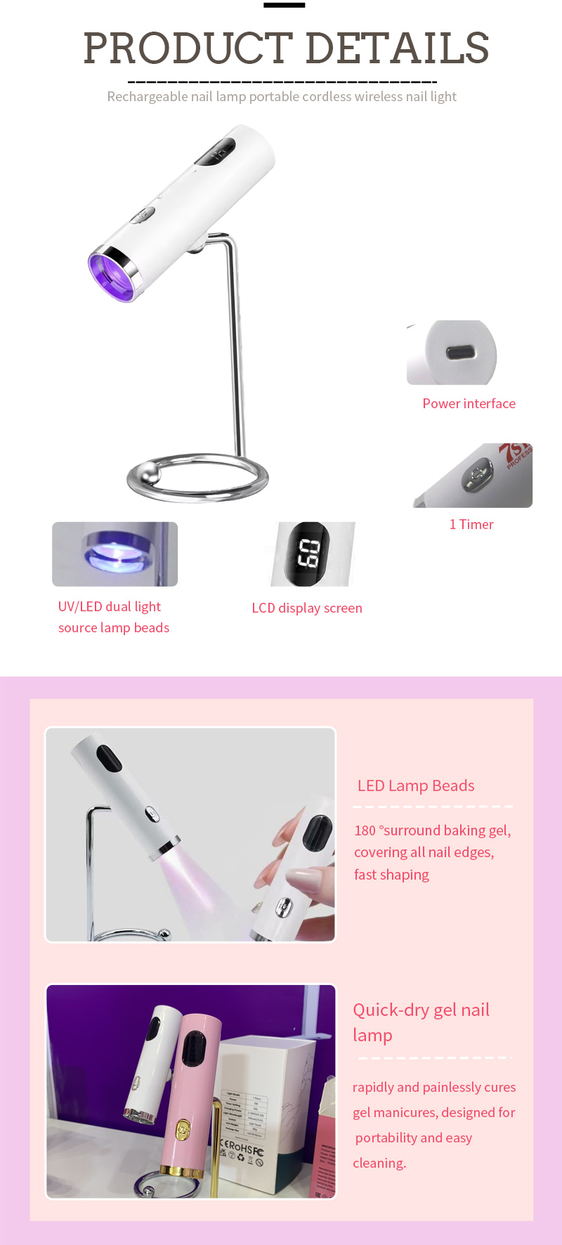 Продукт обеспечивает равномерное высыхание клея без усадки. Двойные источники света обеспечивают мягкий нагрев, предотвращающий изменение цвета рук и напряжение глаз, подходят как для рук, так и для ног, обеспечивая удивительно быстрое высыхание.