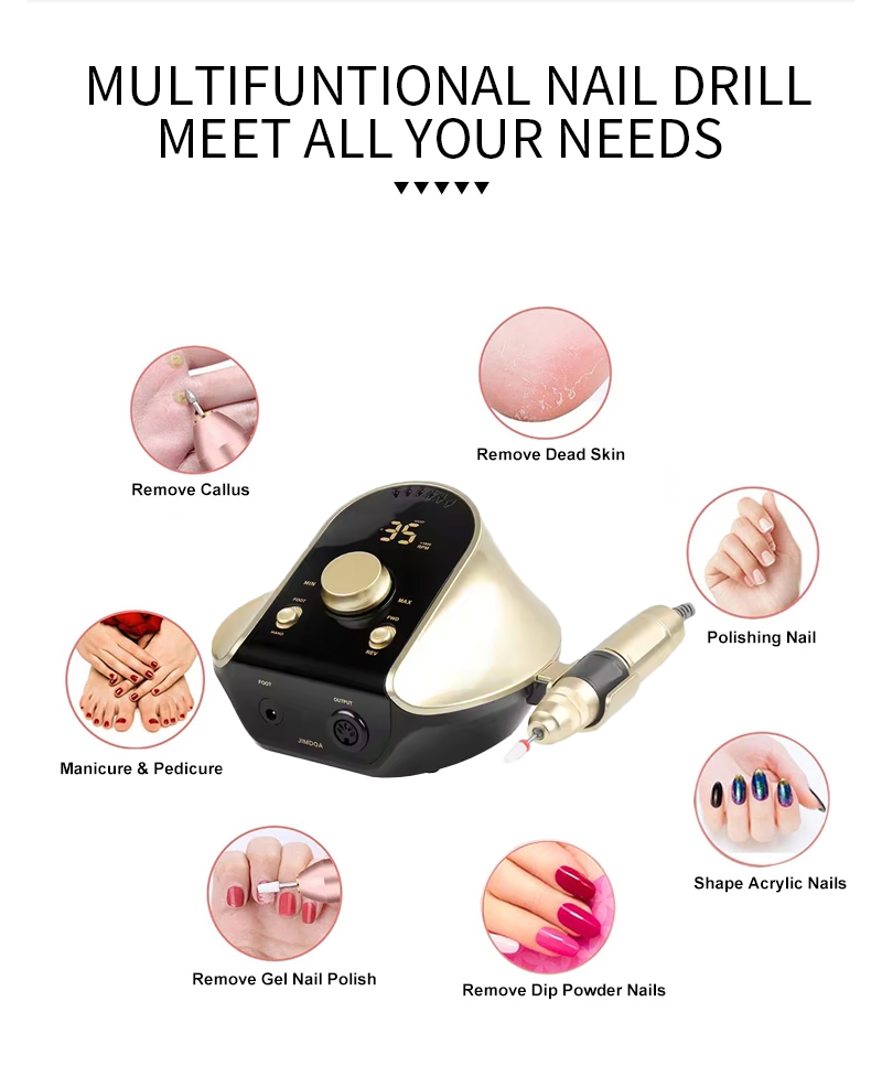 Электрическая дрель для ногтей, наконечник 65 Вт, нелегко повредить, 35000 об/мин