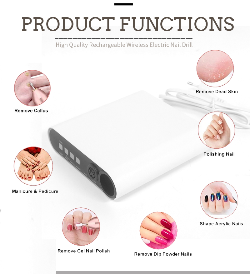 Электрическая дрель для ногтей, наконечник 65 Вт, нелегко повредить, 35000 об/мин