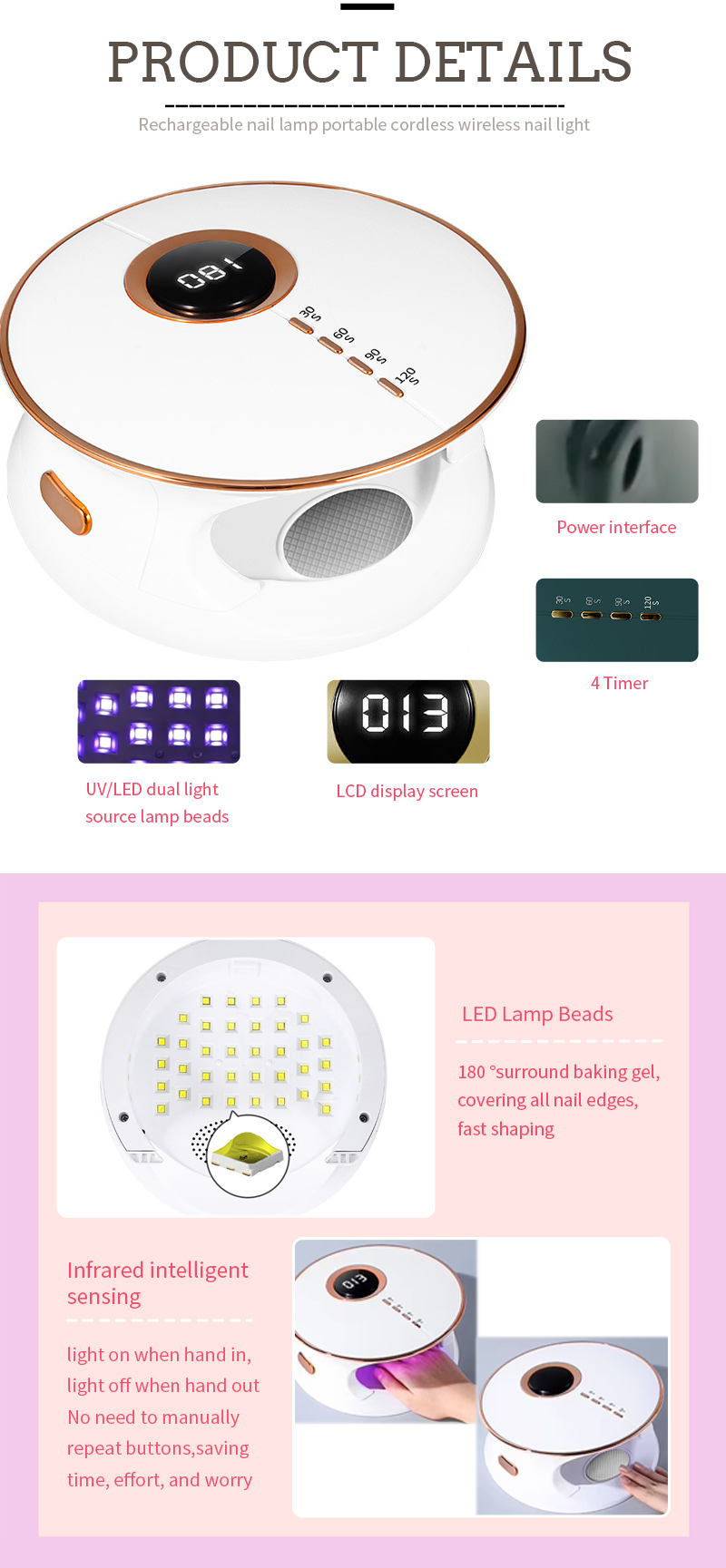 •Мощные светодиодные лампы, быстро затвердевающий гель за 10 с.