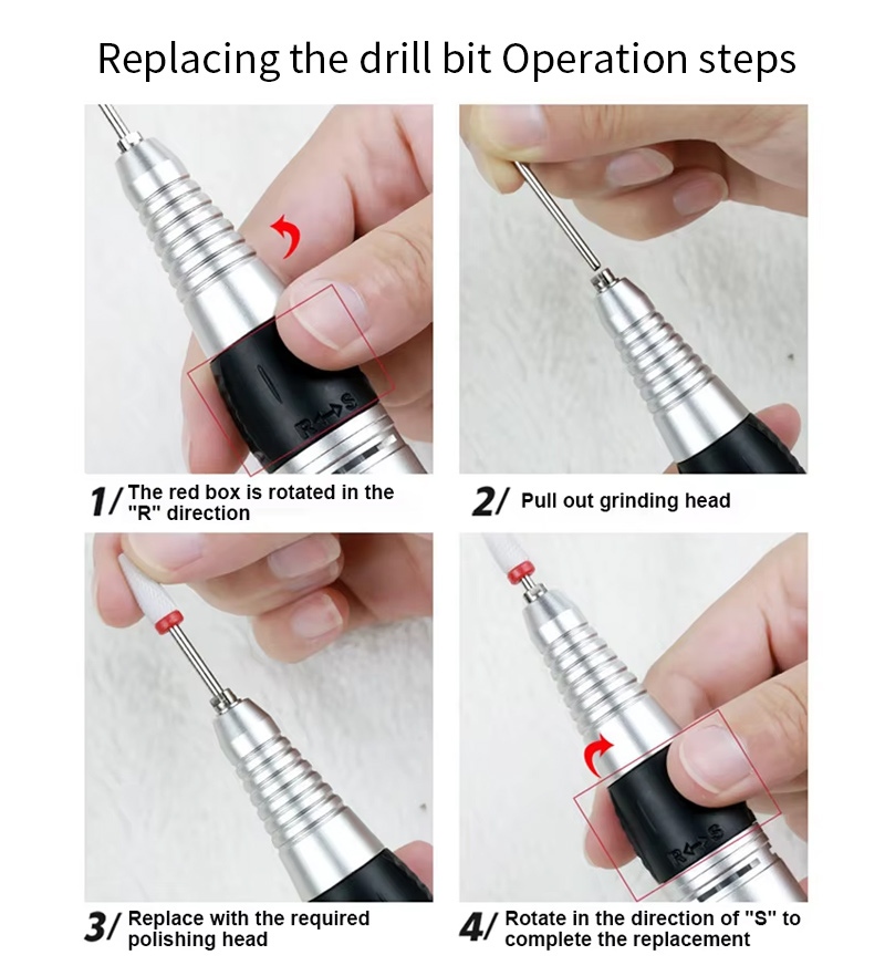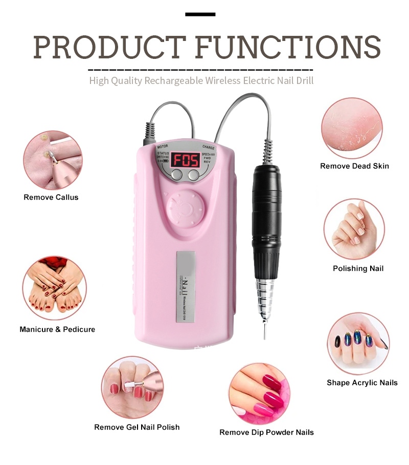 Этот профессиональный метод работы с аккумуляторной электрической дрелью для ногтей, то есть подключи и вытащи, простой и удобный, замену можно использовать после завершения.