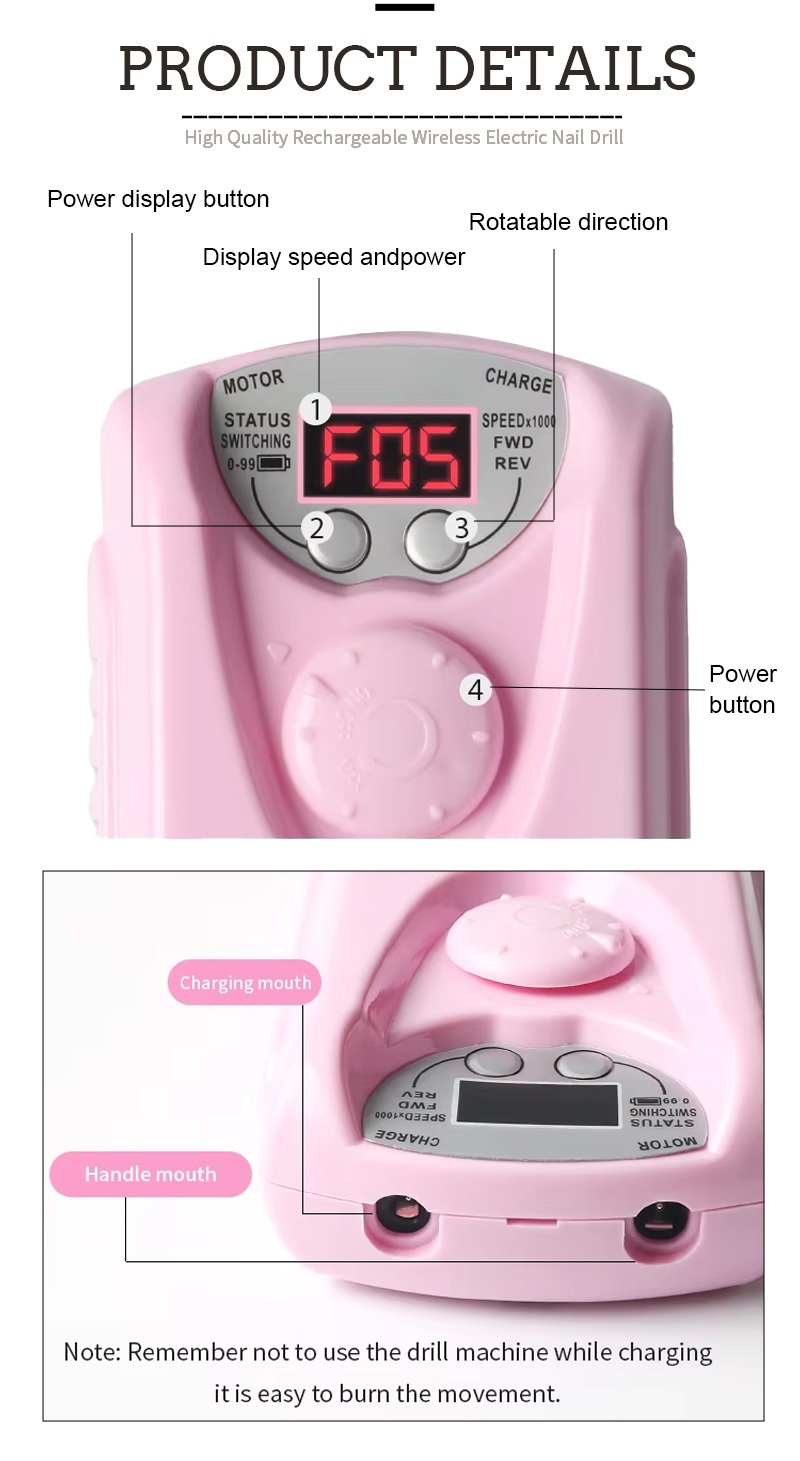 | Профессиональная аккумуляторная электрическая дрель для ногтей. Подробности |