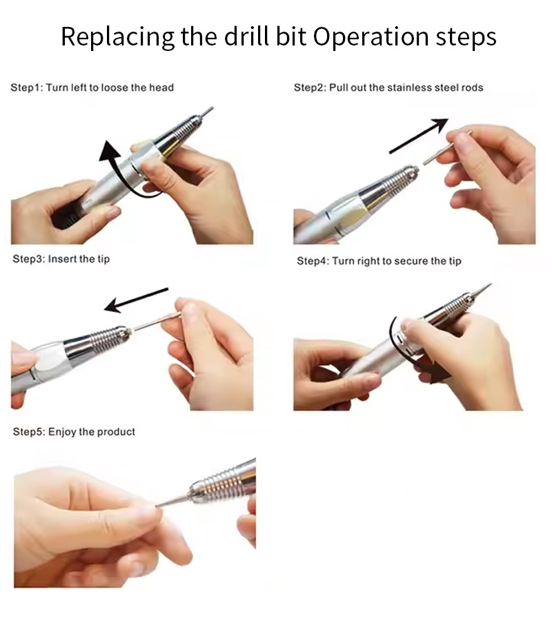 Этот профессиональный портативный станок для сверления ногтей со скоростью замены 35 000 об/мин, метод работы, то есть вставьте и вытащите, простой и удобный, замену можно использовать после завершения.