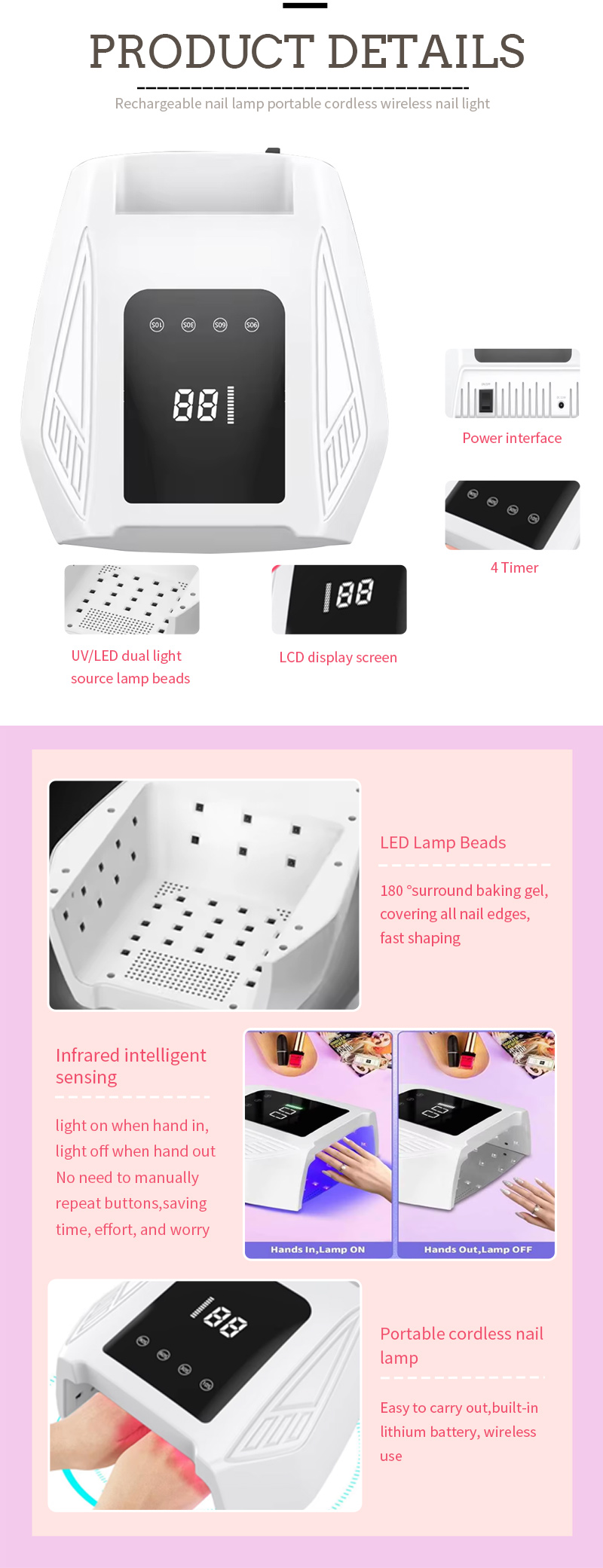 Перезаряжаемая светодиодная лампа для сушки ногтей 86 Вт, переносная